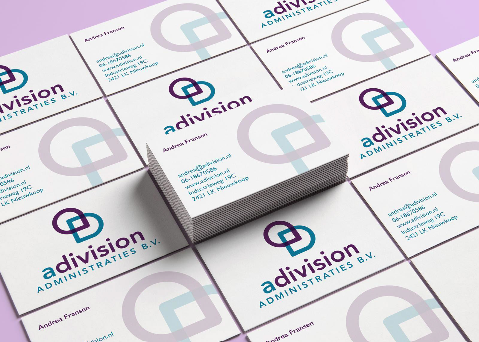Voor administratiekantoor Adivision heb ik verschillende middelen ontworpen en ontwikkeld om hun professionele uitstraling te versterken.